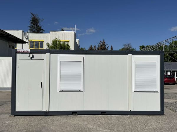 Le bureau de chantier 17 m² avec volets roulants est un module modulaire isolé, lumineux et sécurisé. Idéal pour chantiers, bureaux mobiles ou bases vie, il est livré prêt à l’emploi, équipé d’électricité, de fenêtres double vitrage et d’un sol PVC professionnel.
